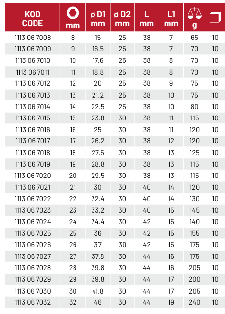 Izeltaş 1113 06 7008 1/2’’ Altı Köşe Havalı Lokma Anahtar (Mm)